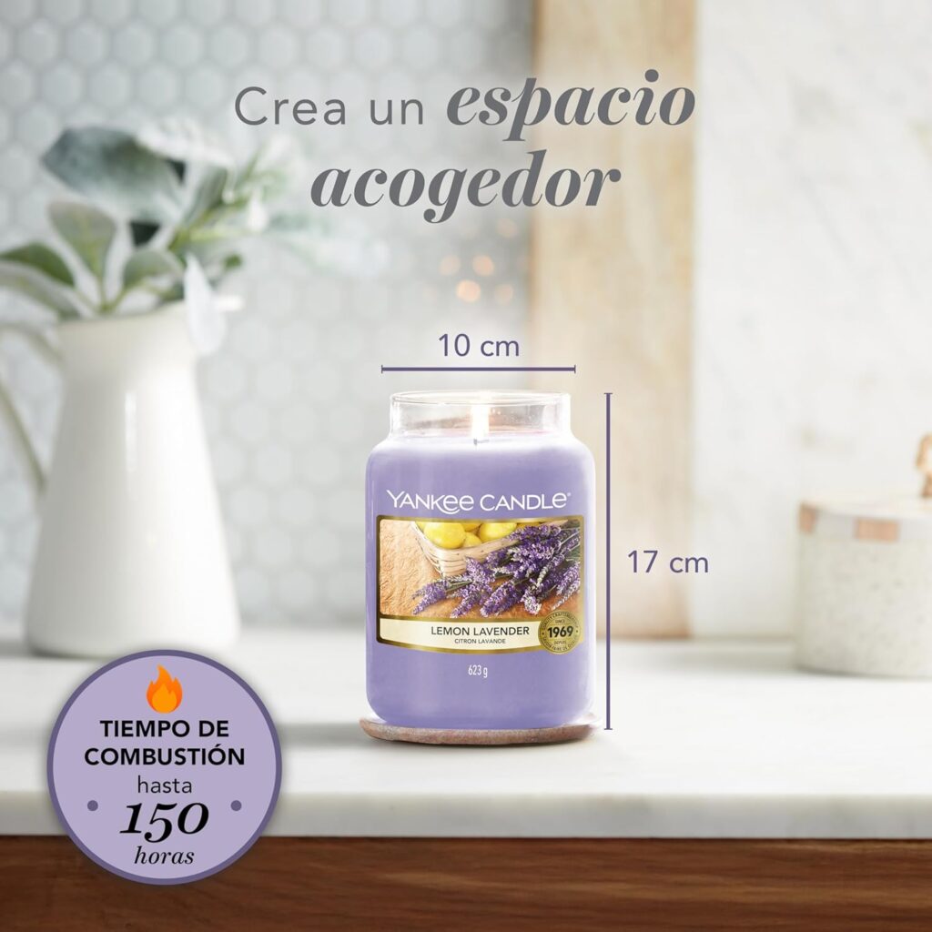 Vela aromática Yankee Candle | Limón y Lavanda. vela en tarro grande | Velas de larga duración: hasta 150 horas.