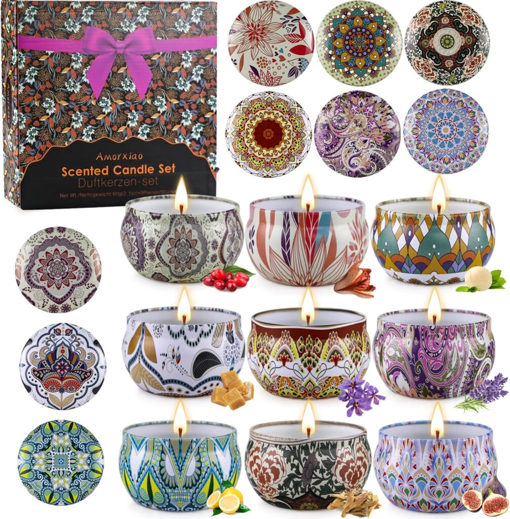 Velas Aromaticas Regalo, Pack de 9 Velas Aromaticas Perfumadas Decorativas, Cera de Soja. Velas Naturales 70g. Genial para Regalo.