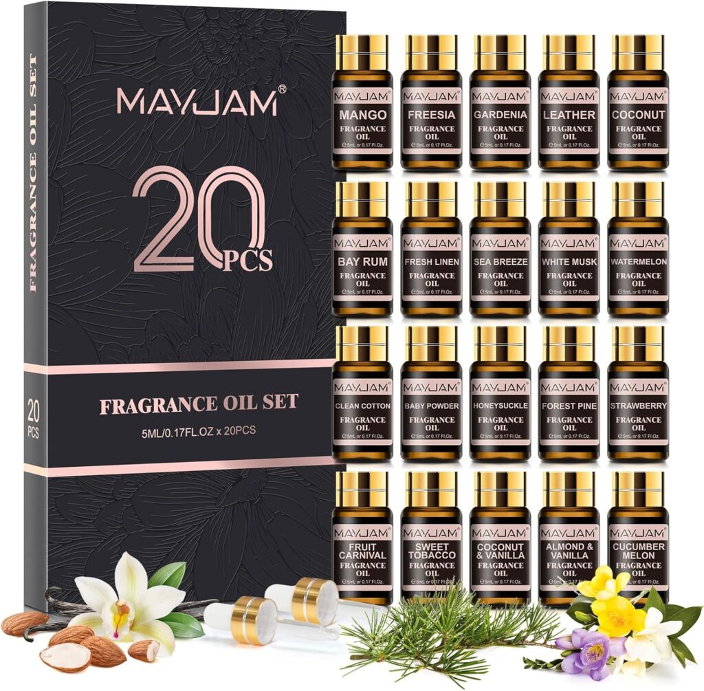 MAYJAM Juego De Aceite De Fragancia 20 piezas, Set De Regalo De Aceites Esenciales Para Difusor, Aromaterapia y Humidificador.