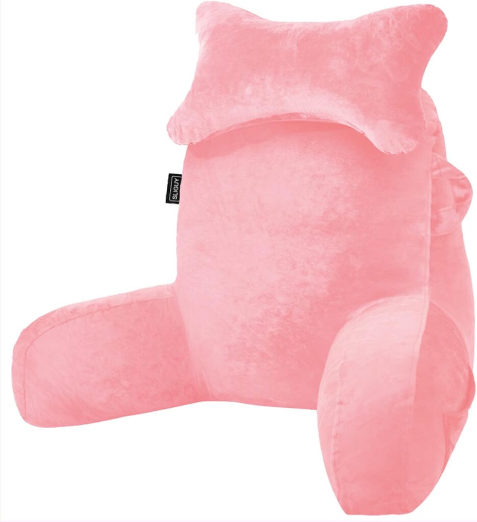 SLIGUY Almohada de lectura para sentarse en la cama, almohada dorsal con bolsillos, almohada dorsal para adulto, silla de cama para descansar, leer, ver televisión, jugar rosa