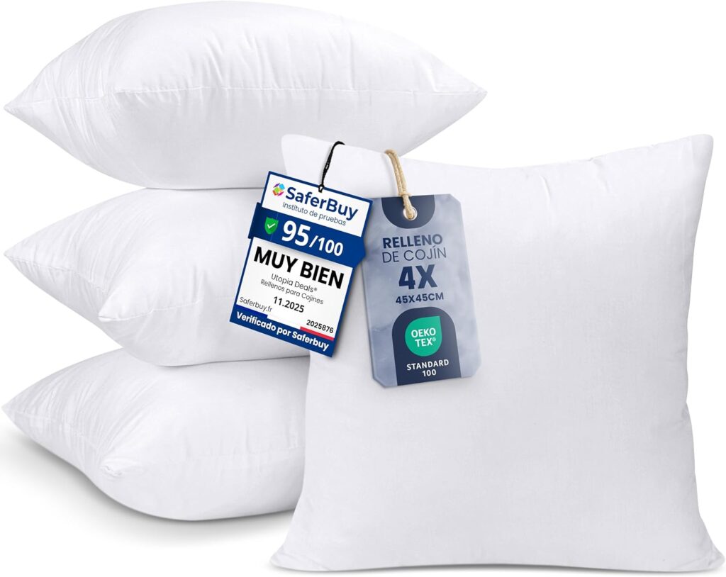 Utopia Bedding Relleno de Cojín 45 x 45 cm (4 Unidades), Fibra Virgen Siliconada, Almohadas de Sofá (Blanco)