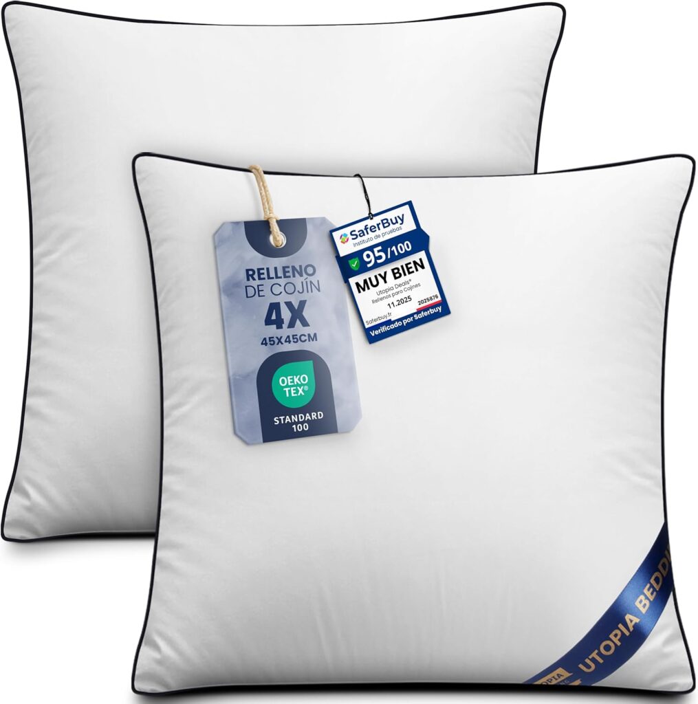 Utopia Bedding Relleno cojín Cojínes para Cama, Cojines Decorativos para sofá (2, Blanco, Unidad de 2 | 45×45 cm)