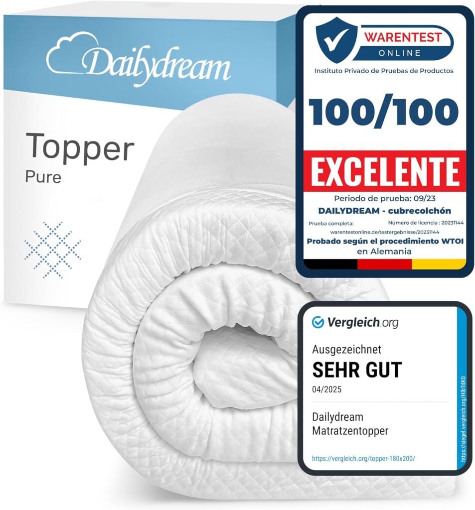 Dailydream Topper viscoelástico para colchón de 160×200, Grosor 5cm, Sobrecolchón Memory Foam, Edition Standard, Model M, Cubrecolchón de Espuma, Espuma.