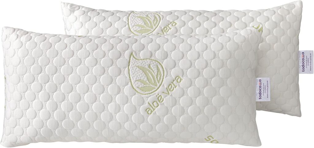 Almohada viscoelástica Aloe Vera con Copos 100% viscoelásticos. Tejido Strech Aloe Vera. Termoregulable. Firmeza Media – Alta. Fabricado en España. (Pack 2 x 70 cm)