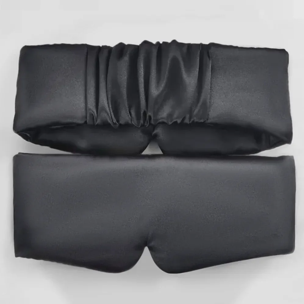 Antifaz para dormir de seda satinada con cobertura total y diseño cómodo para bloquear la luz.
