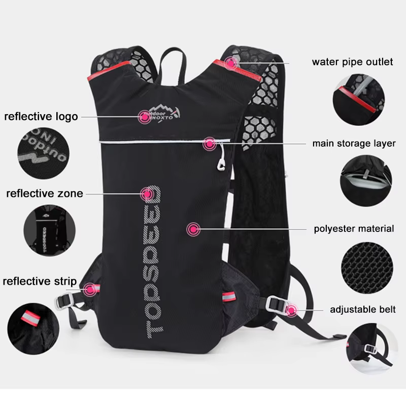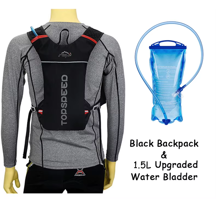 Esta mochila de hidratación ultraligera está diseñada para actividades deportivas al aire libre como running, ciclismo, senderismo o trail. Incluye una bolsa de agua de 1,5 litros que permite hidratarse fácilmente durante el ejercicio sin necesidad de detenerse.