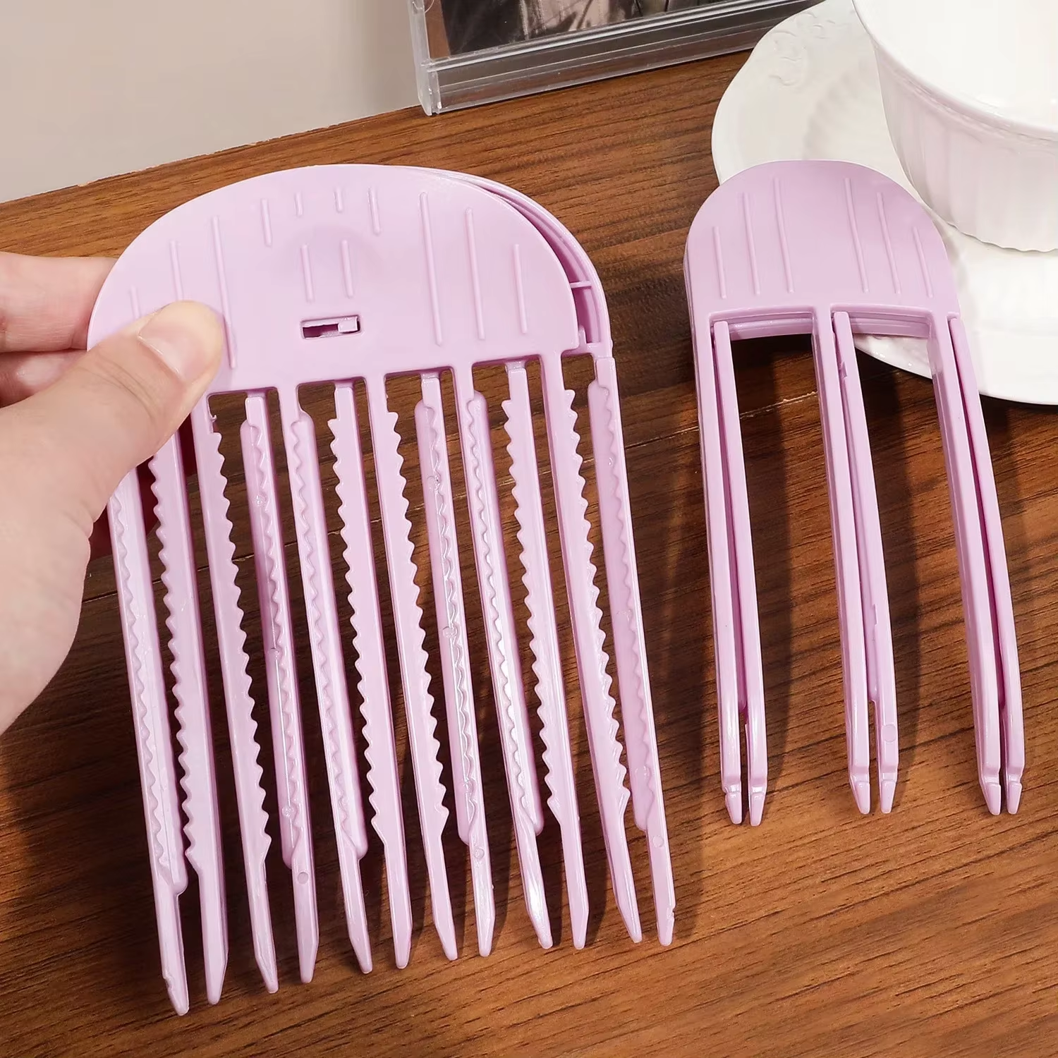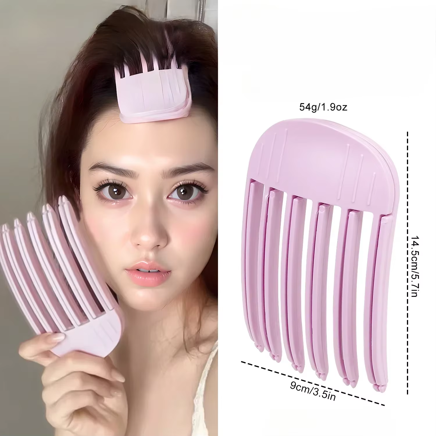 El peine voluminizador con pinza está diseñado para ayudar a dar forma y elevar la raíz del cabello de manera sencilla. Su diseño tipo clip permite colocarlo fácilmente en la parte superior del cabello mientras se seca o se peina, aportando efecto de mayor volumen.