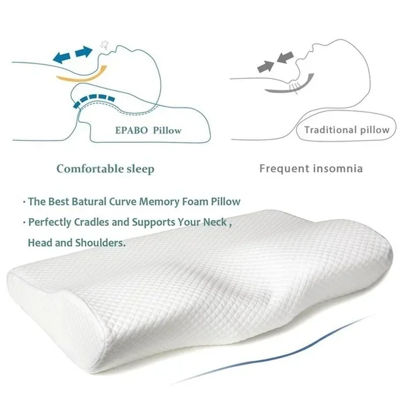 Almohada cervical viscoelástica con diseño ergonómico antironquidos y funda lavable para un descanso cómodo.